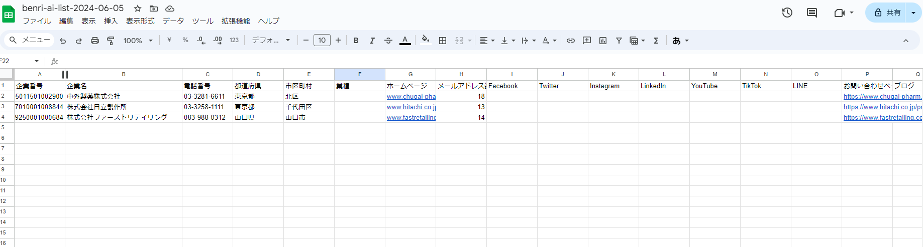 また、すでにターゲット企業のリストを持っているものの、企業名や企業のWebサイトのURL情報しかなく、メールアドレスの他電話番号やSNS情報を取得したいというケースがあるかもしれません。