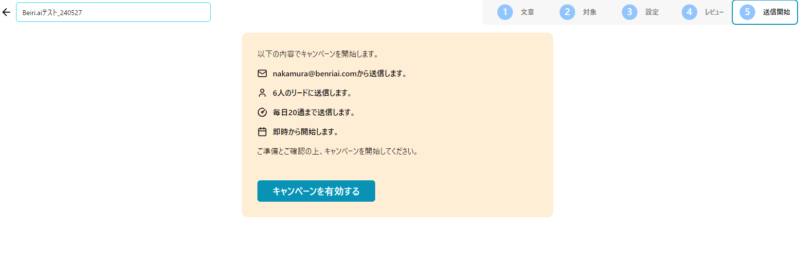一度キャンペーンが実行されると⑤送信確認は⑤分析に変更されます。