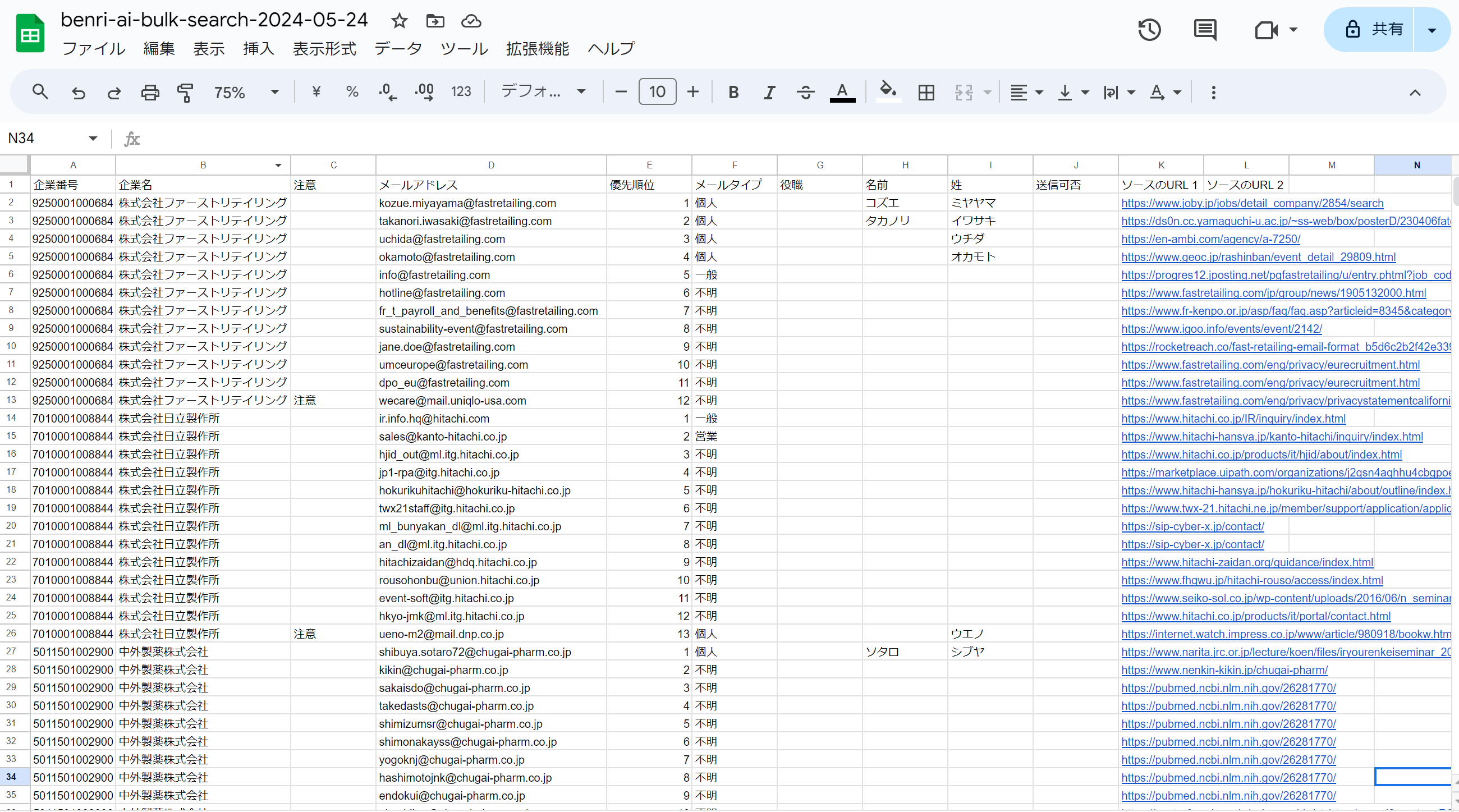 Benri.aiでは、Web上で公開されているターゲット企業のメールアドレスは全て取得することが可能です。ただし全て取得してしまうとどのメールアドレスに送るのか選択するのに手間がかかってしまいます。